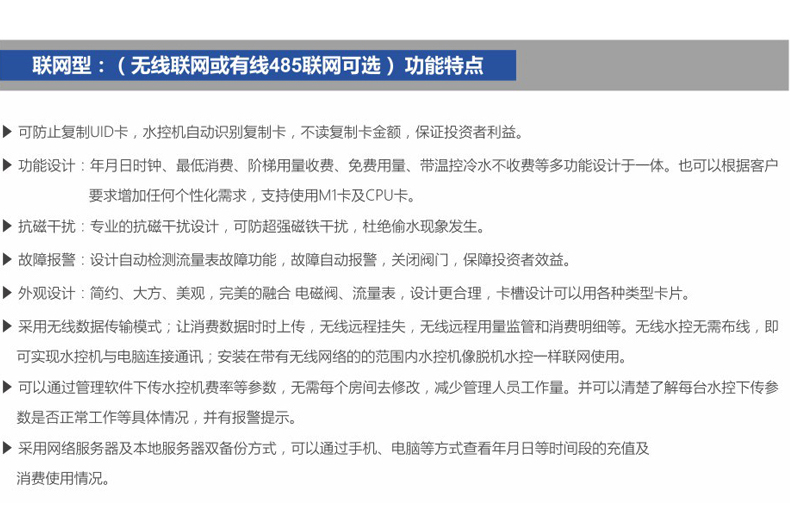 鍙互閫氳繃綆$悊杞歡涓嬩紶姘存帶鏈鴻垂鐜囩瓑鍙傛暟錛屾棤闇姣忎釜鎴塊棿鍘諱慨鏀癸紝鍑忓皯綆$悊浜哄憳宸ヤ綔閲忋傚茍鍙互娓呮浜嗚В姣忓彴姘存帶涓嬩紶鍙傛暟鏄惁姝e父宸ヤ綔絳夊叿浣撴儏鍐碉紝騫舵湁鎶ヨ鎻愮ず銆?br />